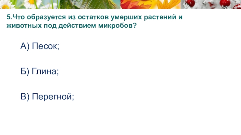 Слайд 185.Что образуется из остатков умерших растений и животных под действием микробов?