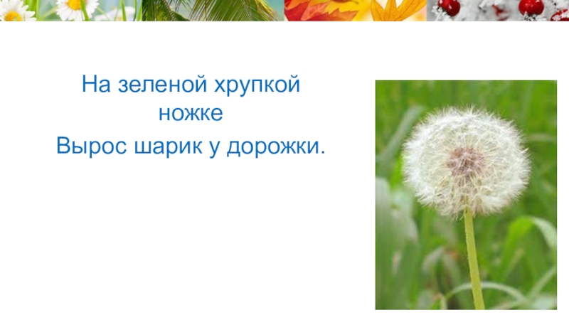 Слайд 23На зеленой хрупкой ножке