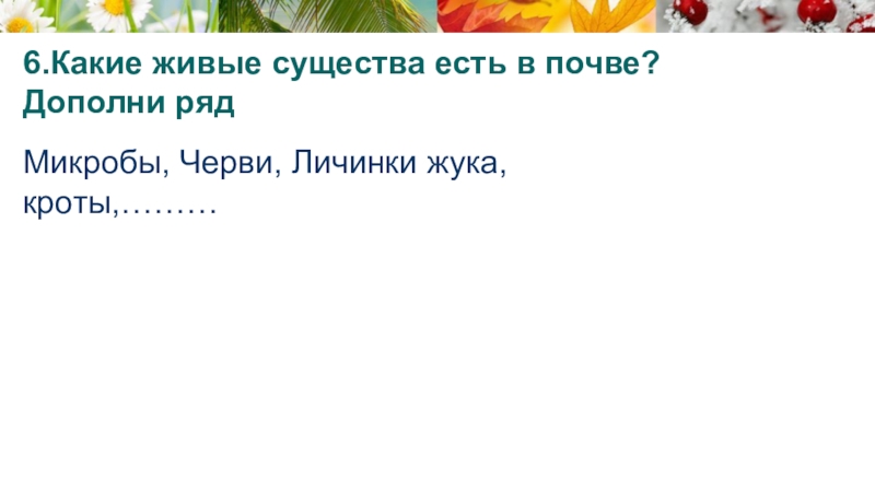 Слайд 196.Какие живые существа есть в почве?