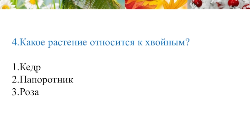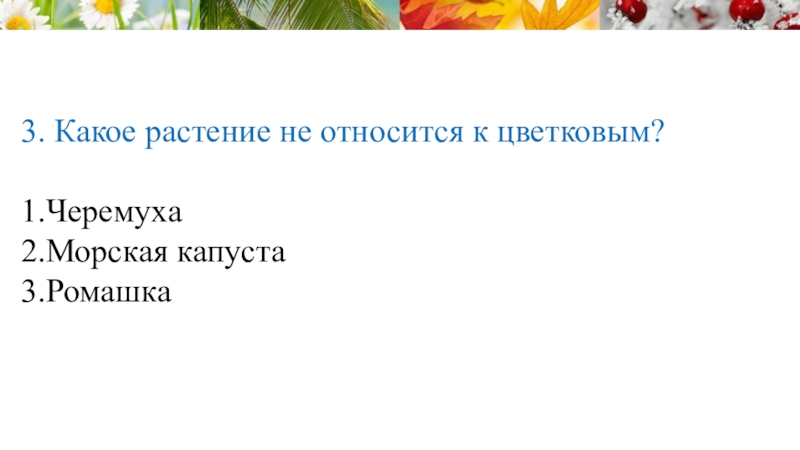 Слайд 423. Какое растение не относится к цветковым?