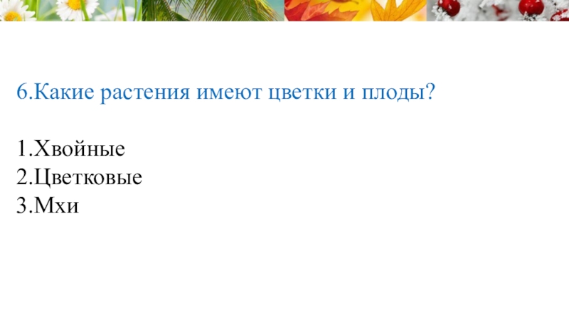 Слайд 456.Какие растения имеют цветки и плоды?