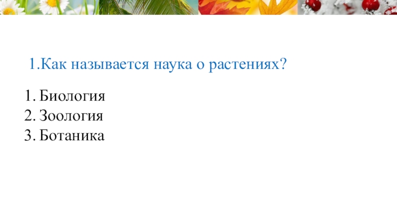 Слайд 401.Как называется наука о растениях?