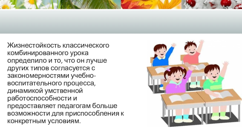 Слайд 3Жизнестойкость классического комбинированного урока определило и то, что он лучше других