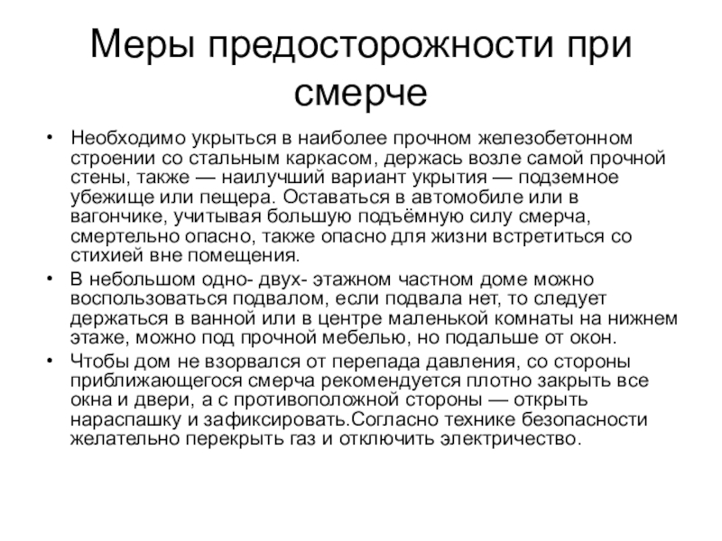 Слайд 12Меры предосторожности при смерче