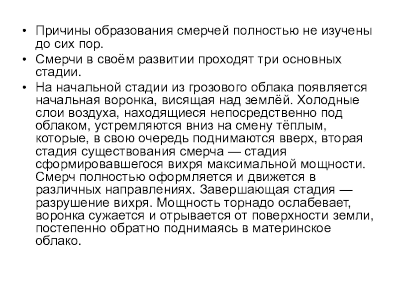 Слайд 9Причины образования смерчей полностью не изучены до сих пор.