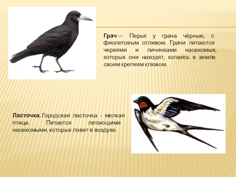 Ласточка. Городская ласточка - мелкая птица. Питается летающими насекомыми, которых ловит в воздухе.