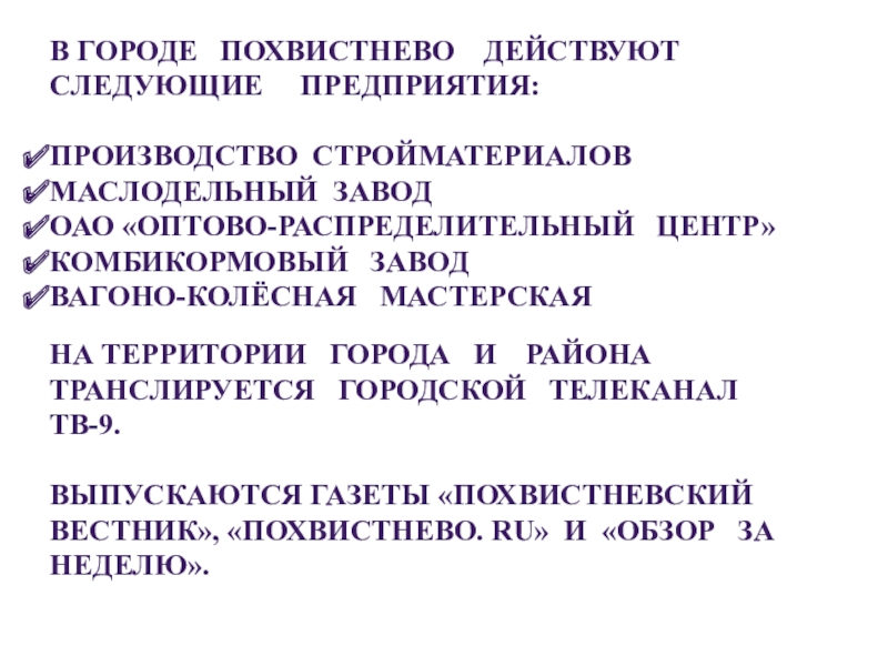 Выпускаются газеты «Похвистневский вестник», «Похвистнево. RU» и «Обзор за неделю».