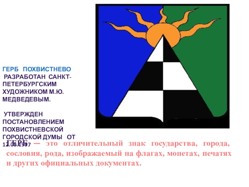 Герб — это отличительный знак государства, города, сословия, рода, изображаемый на флагах, монетах, печатях и других официальных документах.