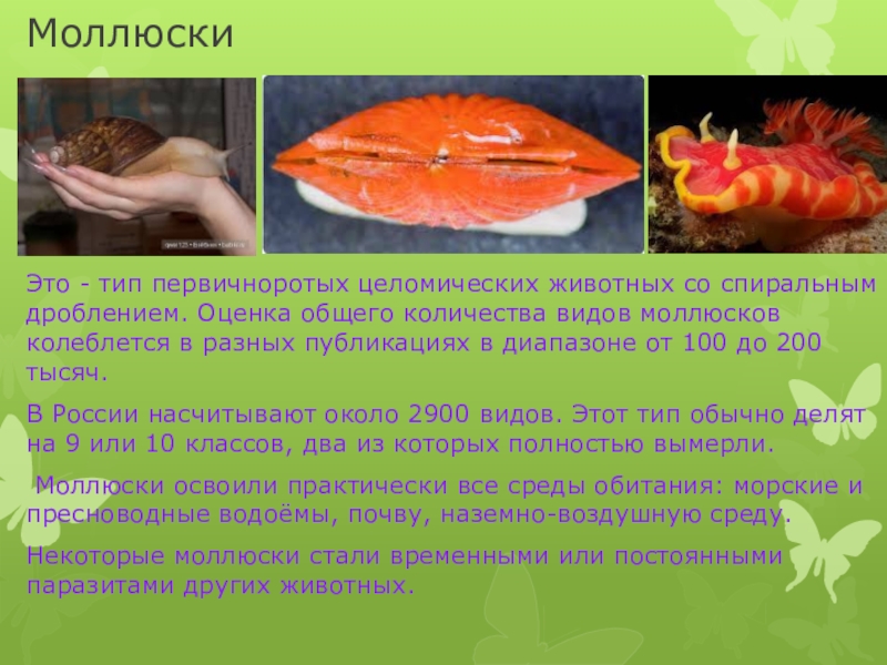 общего количества видов моллюсков колеблется в разных публикациях в диапазоне от 100 до 200 тысяч.