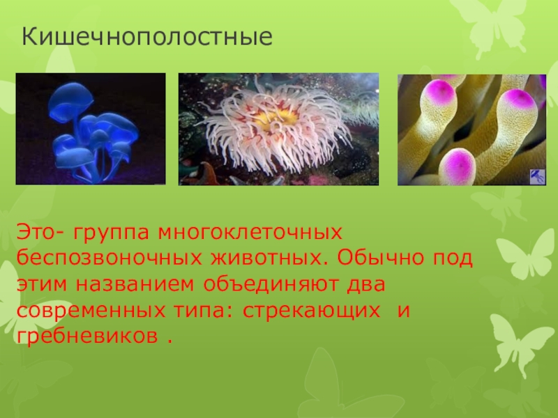 Это- группа многоклеточных беспозвоночных животных. Обычно под этим названием объединяют