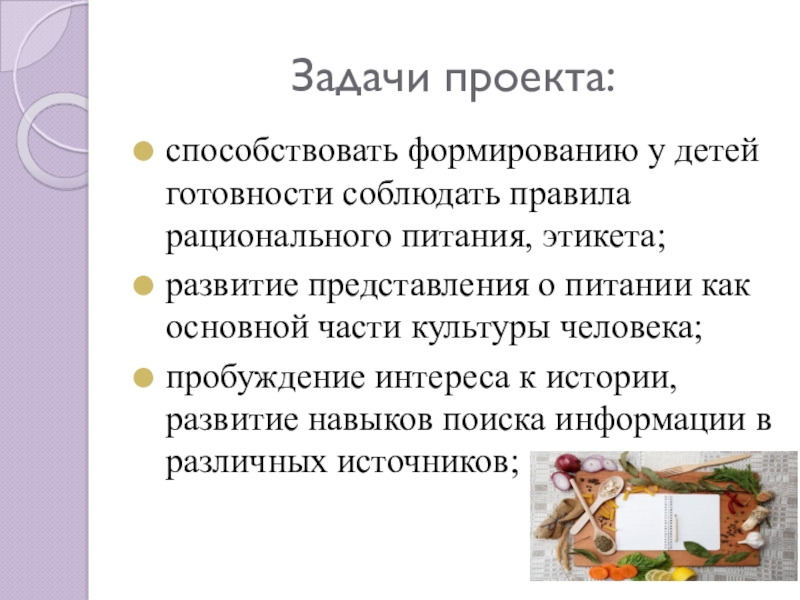 способствовать формированию у детей готовности соблюдать правила рационального питания, этикета;