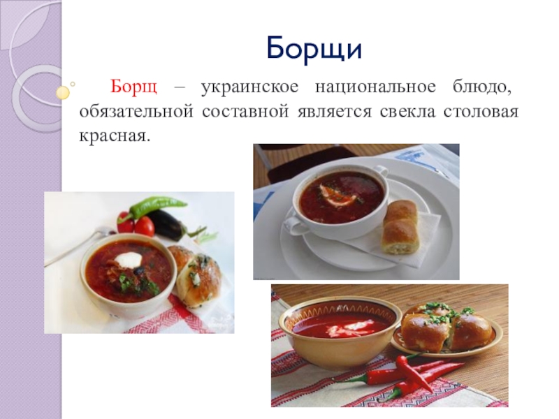 Борщ – украинское национальное блюдо, обязательной составной является свекла столовая