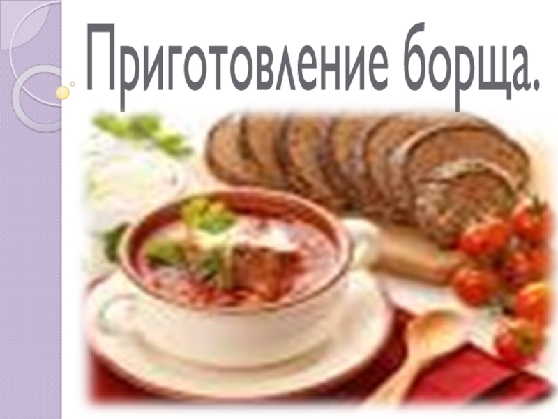 За 5-10 минут до окончания варки кладут сладкий перец (нарез. соломкой), мучную пассеровку (разведенную бульоном), специи. Готовый борщ заправляют салом шпик, растертый с чесноком, настаивают 20 минут.