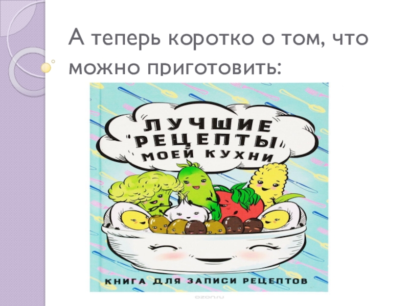 Слайд 13А теперь коротко о том, что можно приготовить: