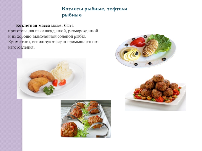 Слайд 12Котлеты рыбные, тефтели рыбные
