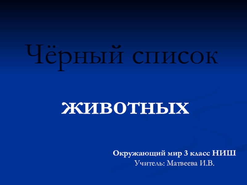 Чёрный списокживотныхОкружающий мир 3 класс НИШУчитель: Матвеева И.В.