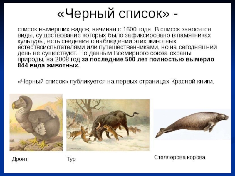 Презентация по окружающему миру 3 класс НИШ Чёрный список животных Детские презентации