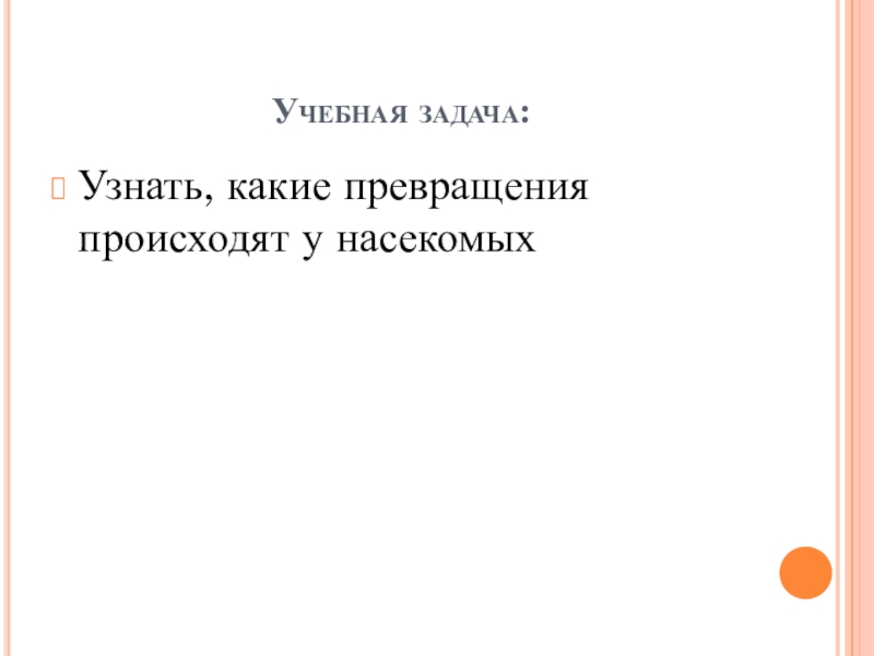 Учебная задача:Узнать, какие превращения происходят у насекомых