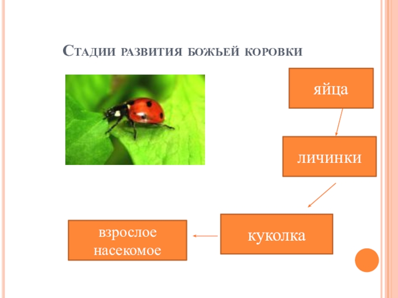 Стадии развития божьей коровкияйцаличинкивзрослое насекомоекуколка