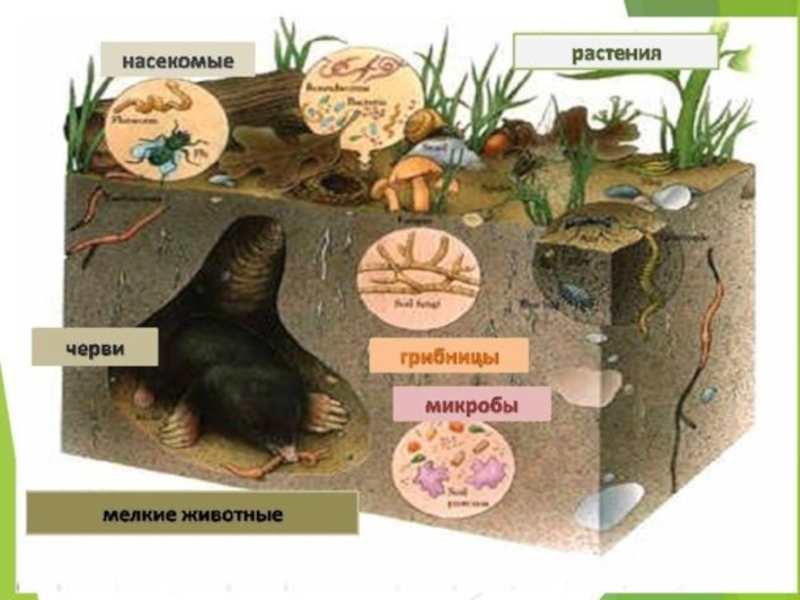 Презентация, доклад по окружающему миру 3 класс НИШ Обитатели почвы