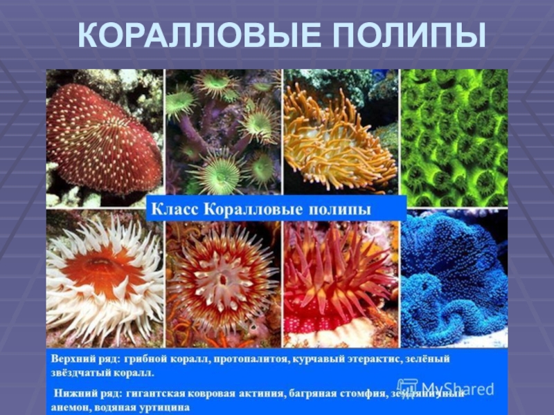Слайд 18КОРАЛЛОВЫЕ ПОЛИПЫ