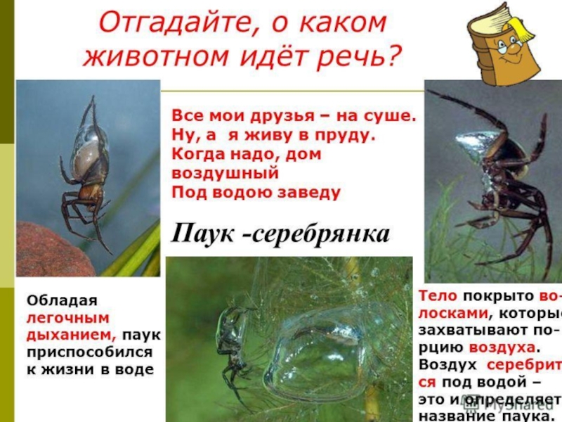 Слайд 33ПАУК-СЕРЕБРЯНКА