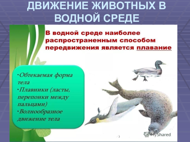 Слайд 6ДВИЖЕНИЕ ЖИВОТНЫХ В ВОДНОЙ СРЕДЕ