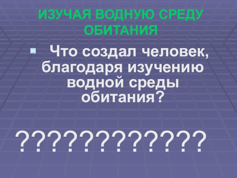 ИЗУЧАЯ ВОДНУЮ СРЕДУ ОБИТАНИЯ  Что создал человек, благодаря изучению водной среды обитания?????????????
