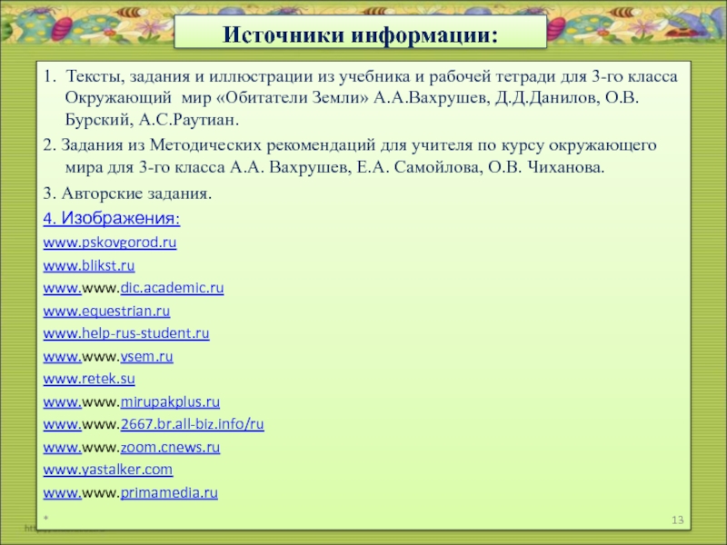 Это сайт презентаций, где можно хранить и обмениваться своими презентациями, докладами, проектами, шаблонами в формате PowerPoint с другими пользователями. Мы помогаем школьникам, студентам, учителям, преподавателям хранить и обмениваться учебными материалами.