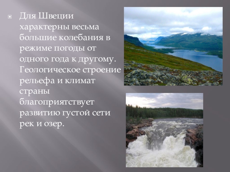 Слайд 6Для Швеции характерны весьма большие колебания в режиме погоды от одного