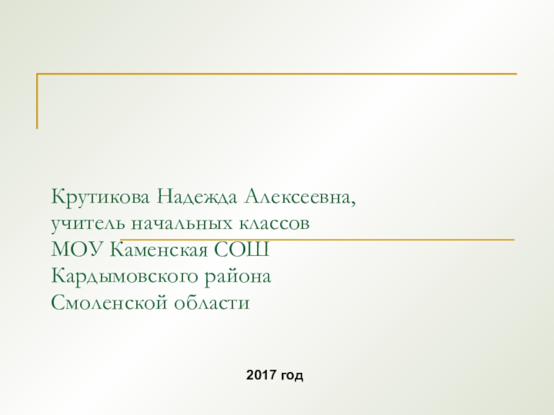 Крутикова Надежда Алексеевна,учитель начальных классовМОУ Каменская СОШКардымовского районаСмоленской области2017 год