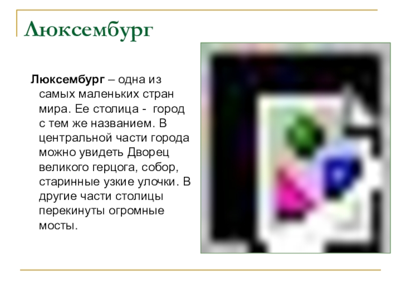 Люксембург Люксембург – одна из самых маленьких стран мира. Ее столица - город с тем же названием.