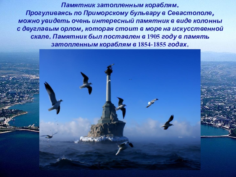 Слайд 13Памятник затопленным кораблям.