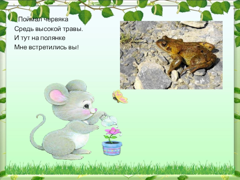 Слайд 2В траве лягушонок  Увидел мышонка. -Какой вы чудесный! - Заквакал он звонко. - Ну как