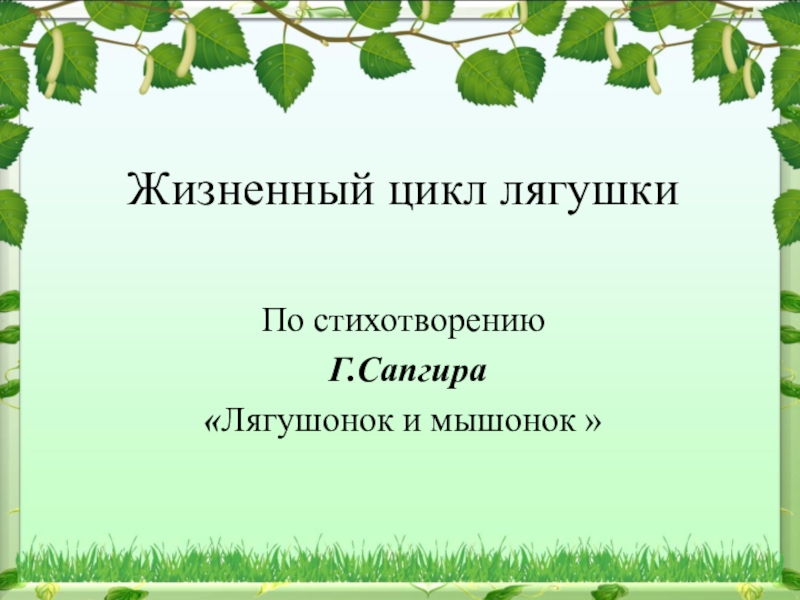 Жизненный цикл лягушкиПо стихотворению Г.Сапгира«Лягушонок и мышонок »
