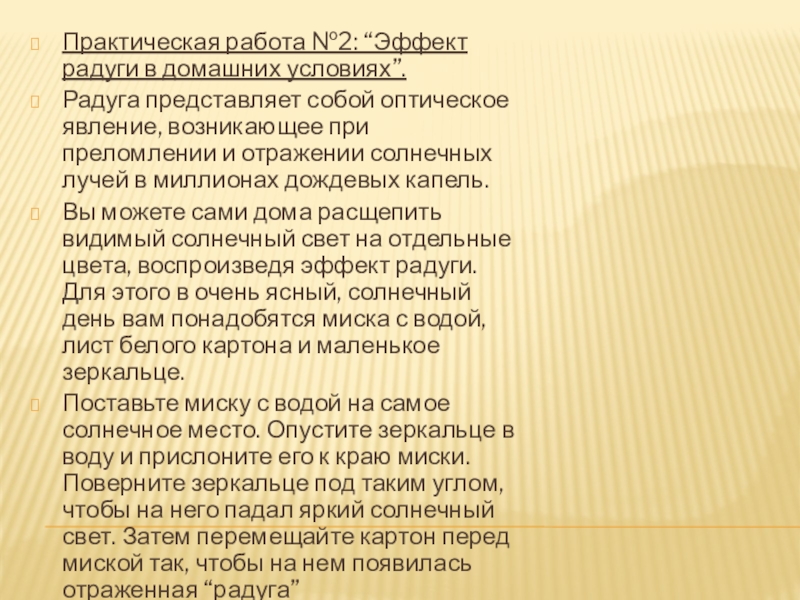 Слайд 9Практическая работа №2: “Эффект радуги в домашних условиях”.