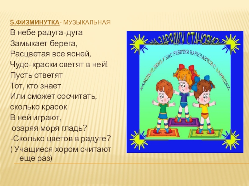 Слайд 105.Физминутка- музыкальная