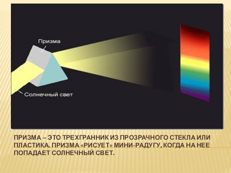 Слайд 8Призма – это трехгранник из прозрачного стекла или пластика. Призма «рисует»