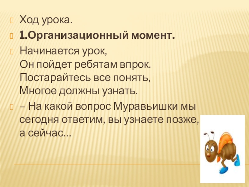 – На какой вопрос Муравьишки мы сегодня ответим, вы узнаете позже, а сейчас…