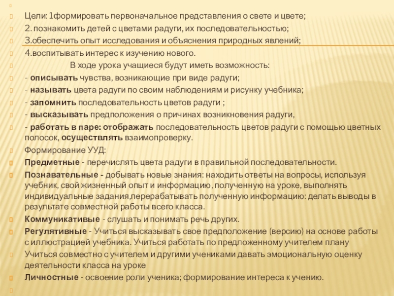 - называть цвета радуги по своим наблюдениям и рисунку учебника;