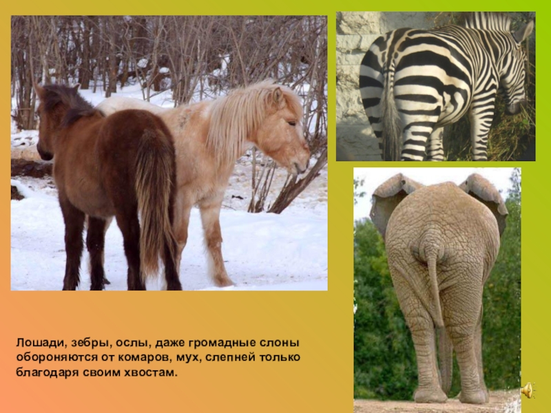 Лошади, зебры, ослы, даже громадные слоны обороняются от комаров, мух, слепней только благодаря своим хвостам.