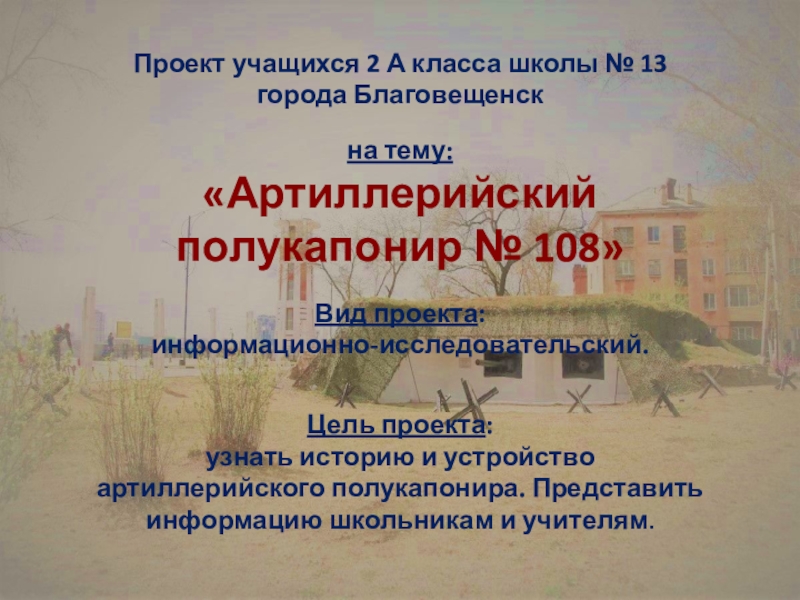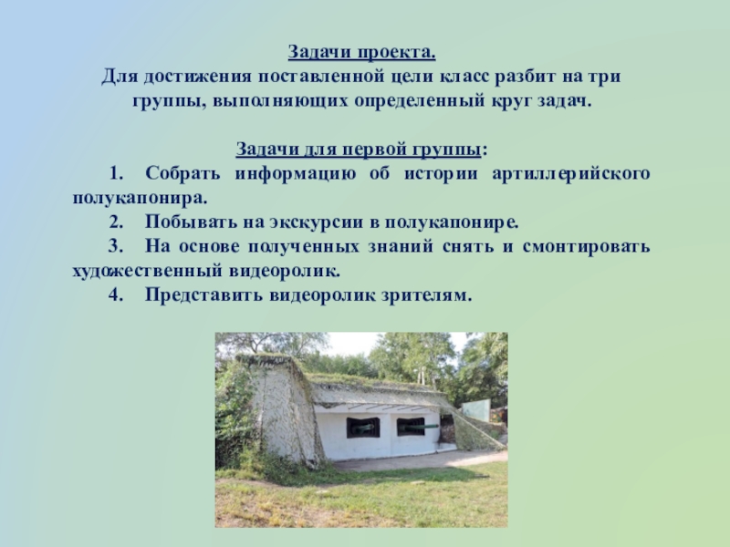узнать историю и устройство артиллерийского полукапонира. Представить информацию школьникам и учителям.