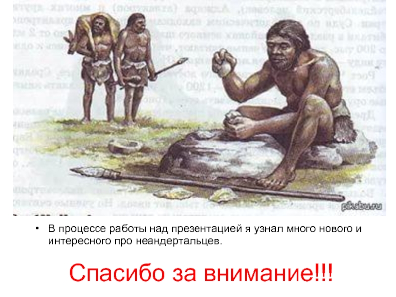 Спасибо за внимание!!!В процессе работы над презентацией я узнал много нового и интересного про неандертальцев.