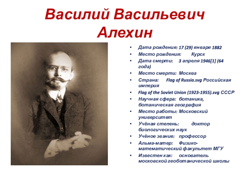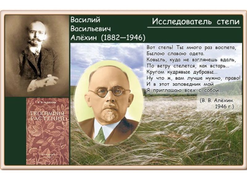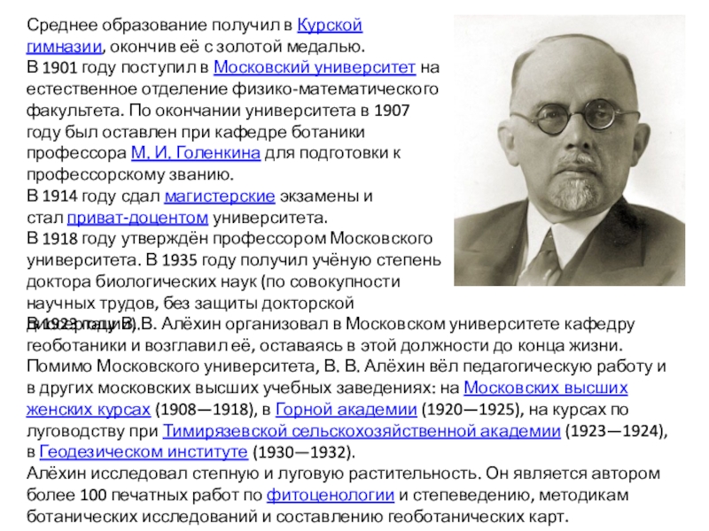 В 1923 году В. В. Алёхин организовал в Московском университете кафедру геоботаники и возглавил её, оставаясь в этой должности до конца жизни.