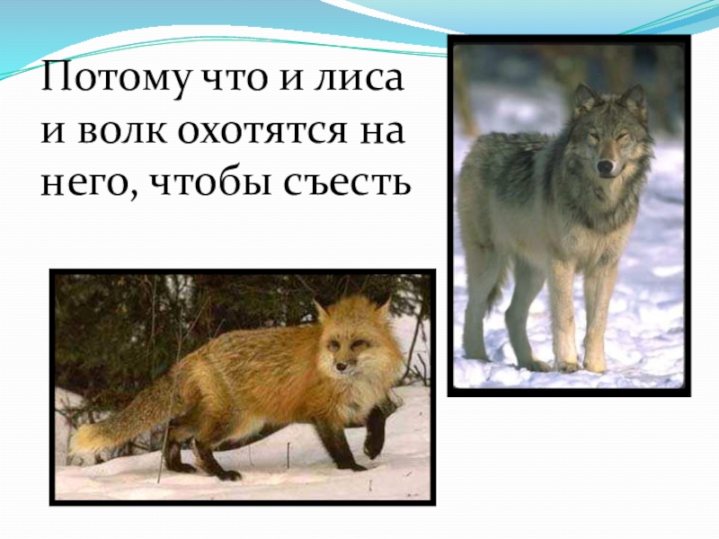 Слайд 9Потому что и лиса и волк охотятся на него, чтобы съесть