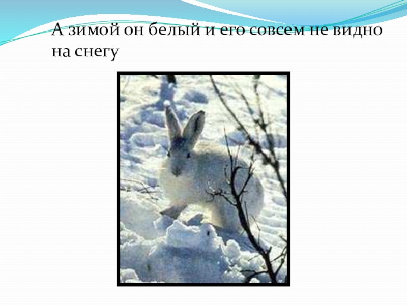 Слайд 12А зимой он белый и его совсем не видно на снегу
