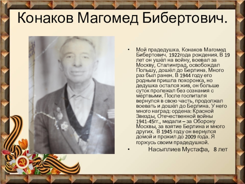Мой прадедушка, Конаков Магомед Бибертович, 1922года рождения. В