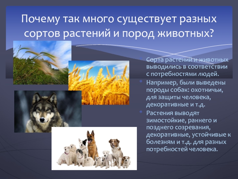 Почему так много существует разных сортов растений и пород животных?