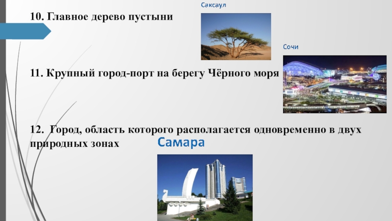 10. Главное дерево пустыни11. Крупный город-порт на берегу Чёрного моря12. Город, область которого располагается одновременно в двух