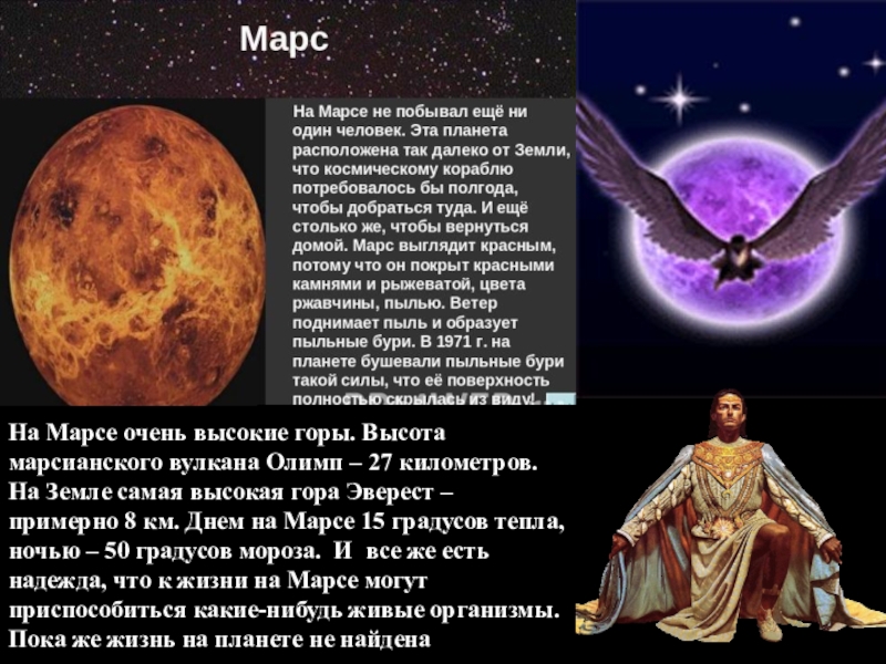 Слайд 7На Марсе очень высокие горы. Высота марсианского вулкана Олимп – 27